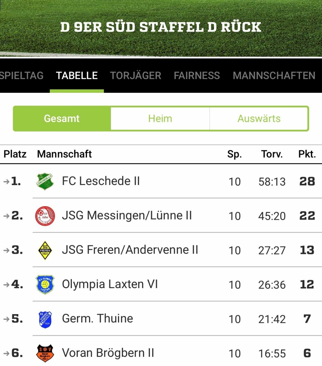 D2 AUCH IN DER RÜCKRUNDE UNGESCHLAGENER STAFFELSIEGER DER STAFFEL D-SÜD / EMSLAND |