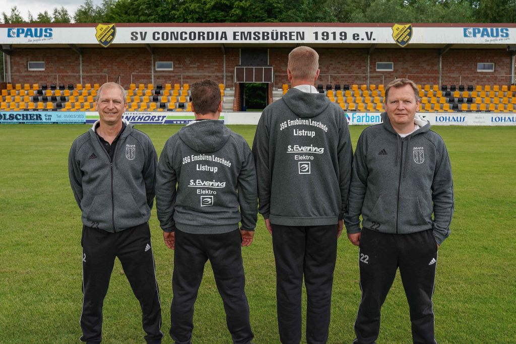 Oben von links: Co-Trainer Frank Gösse, Alexander Haarmann, Noor Aldeen Daboul, Jannes Siemer, Mika Berendes, Niklas Platt, Jonas Gösse, Gerrit Feldmann und Jan Schwiertz
