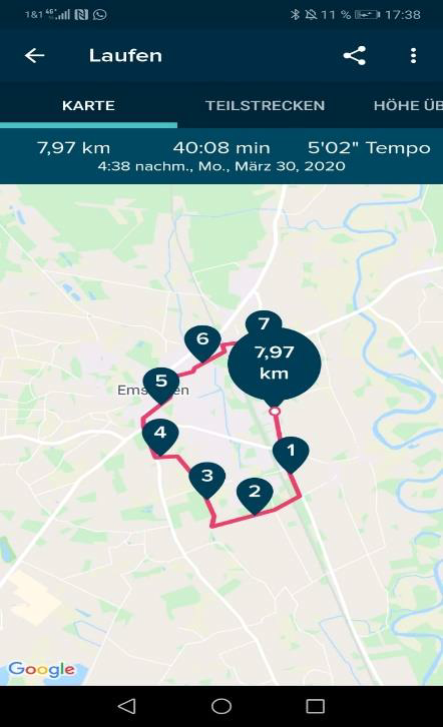 Zum Beweis hat er dieses Protokoll eines Laufes beigefügt, das er mit Hilfe seiner Smartwatch erstellt hat, die alle wichtigen Daten speichert.