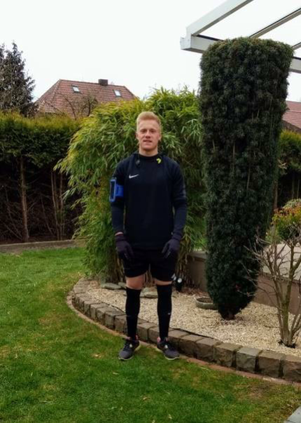 Torwart Tom Spieker: „Ich gehe zwei Mal die Woche laufen und war eigentlich drei bis vier Mal die Woche beim Trimmpfad im Wald, was für den Oberkörper machen. Der ist jetzt aber leider geschlossen. Also versuche ich es mit Körpergewichtsübungen, also Liegestütz, Unterarmstütz, Klimmzüge und sowas. Man weiß sich irgendwie zu helfen.“