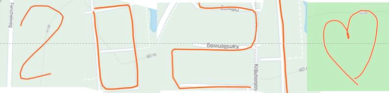 Eine reizvolle Aufgabe war auch, mit der – frei wählbaren – Strecke eine „2021“ darzustellen. Eine besonders gelungene Lösung schickte Tina Borg: