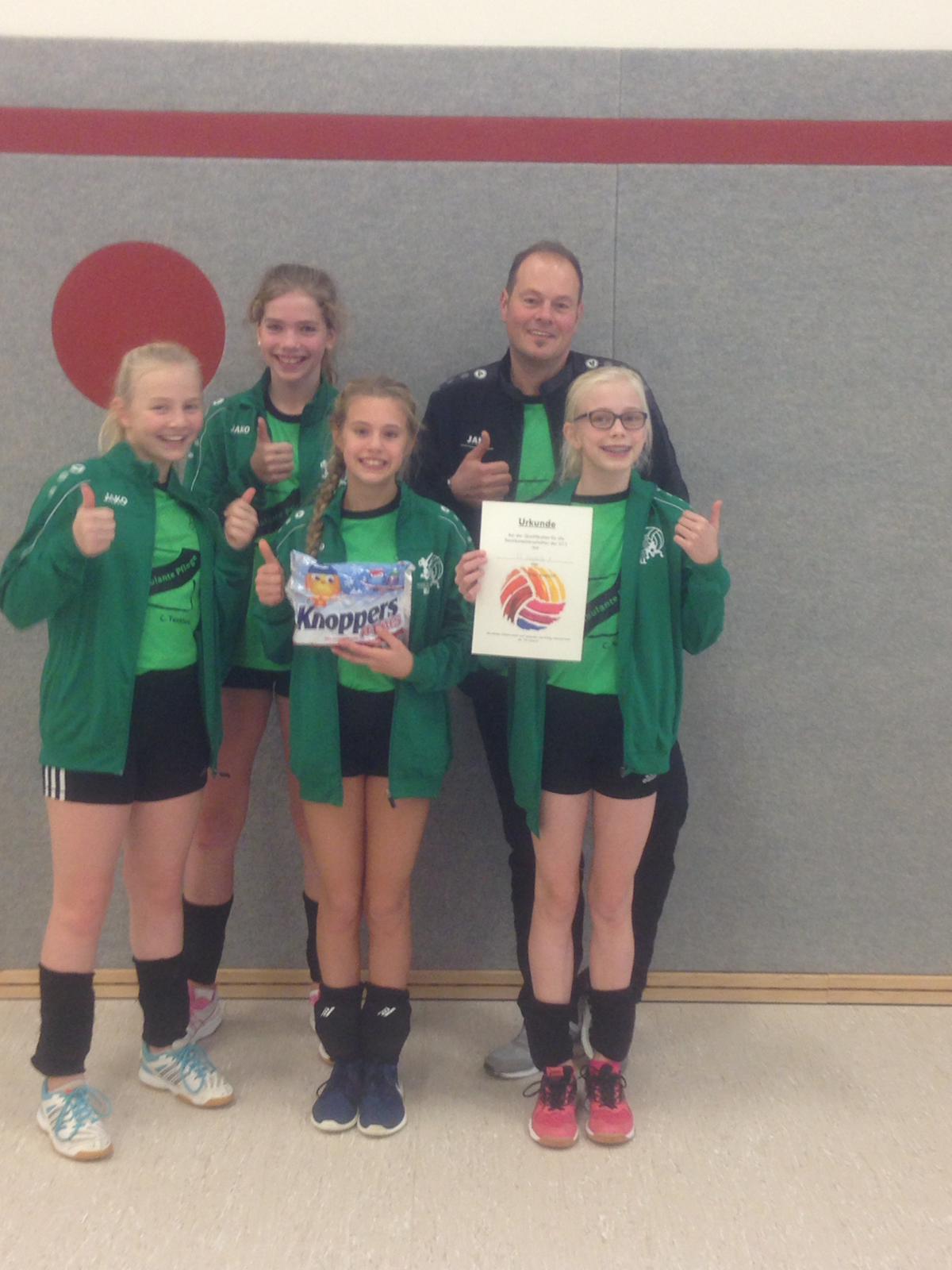 In der zweiten Gruppe erreichte Lintorf 1 mit einem besseren Punktverhältnis von nur 4 Punkten vor dem SCU Emlichheim den Gruppensieg. Daher kam es zum vorgezogenen Endspiel Leschede gegen Emlichheim. Unsere Mädchen spielten sehr konzentriert und hatten heute wirklich einen Sahnetag! Sie ließen dem Bundesliganachwuchs aus Emlichheim keine Chance und gewannen sicher in zwei Sätzen mit 25:18 und 25:17. Damit war das Finale und auch die die Qualifikation zur Bezirksmeisterschaft in Lohne (Vechta) erreicht.