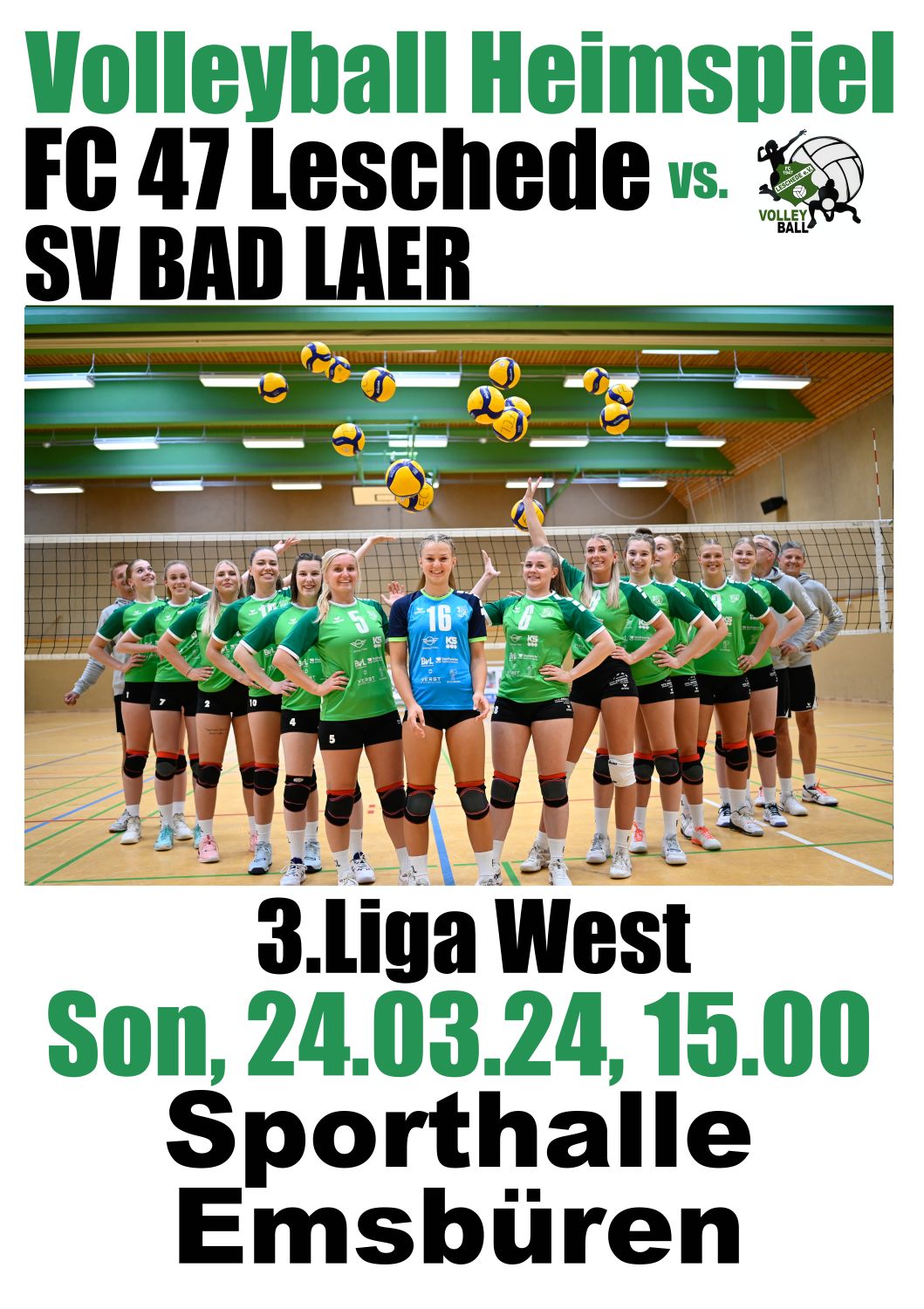Die Volleyballerinnen des FC 47 Leschede gewannen am vergangenen Sonntag im vorletzten Heimspiel der aktuellen Drittligasaison gegen den TV Eiche Horn Bremen mit 3:0. Die Bremerinnen reisten aufgrund krankheitsbedingter Ausfälle mit einem reduzierten Kader an. Zu Beginn des Spiels konnten die Lescheder nicht souverän in ihr Spiel starten und es schlichen sich mehrere Eigenfehler ein. Aus der Annahme heraus wurden zu wenige Bälle nach vorne gebracht, sodass ein Spielaufbau erschwert wurde. Doch im Verlauf des ersten Satzes stabilisierte sich die Leistung des Teams, so auch die Annahme und der Aufschlagsdruck, sodass die Leschederinnen den Satz nach einer dauerhaften Phase im Rückstand noch drehen- und für sich entscheiden konnten. Weiterlesen |